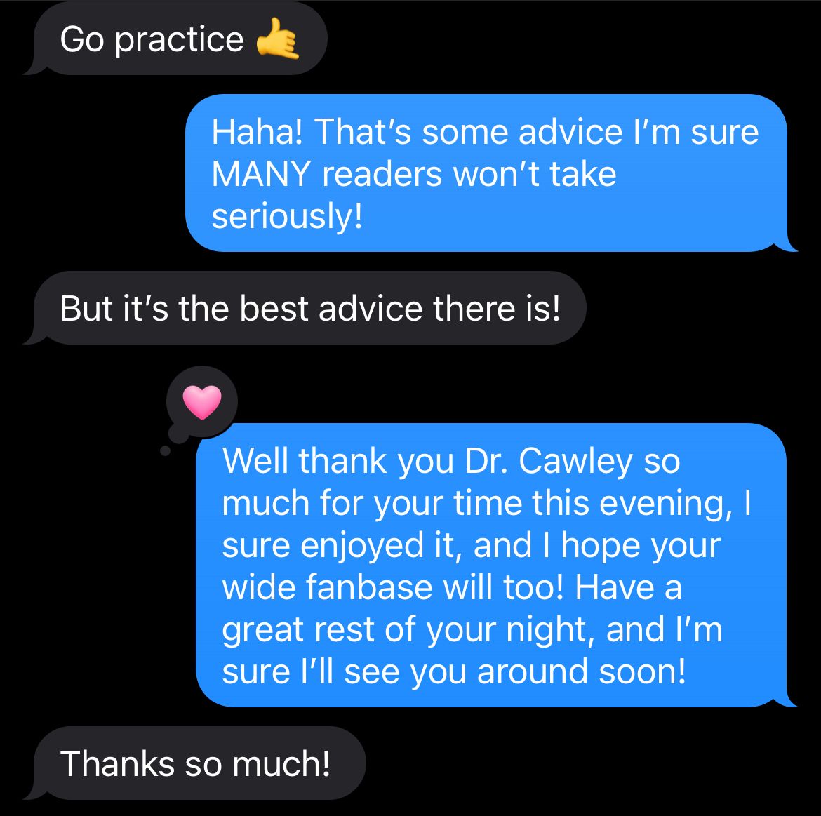 Thanks friends, love you all!