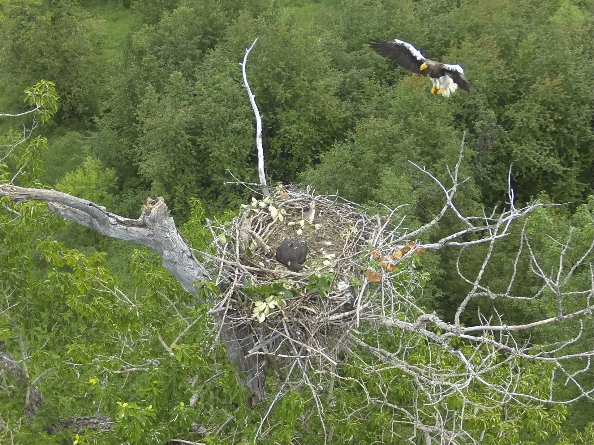 S.S.E.’s will make nests on steep rocky outcrops or in tall, open treetops in coastal areas all the way from Siberia to Northern Japan. They will reuse their nests year to year. However, these nests can weigh hundreds of pounds, and will sometimes break the branches they’re built on. | ![]() |