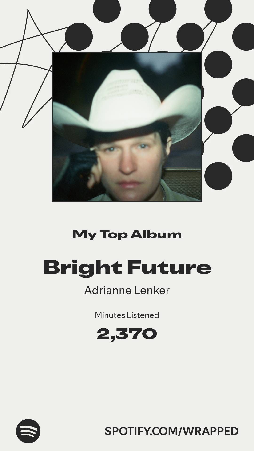 I’ve talked enough about Adrianne in the past. Go listen to Bright Future, check out any of those 5 artists, and if you’re a Spotify user, send me your wrapped, I’d love to see it!