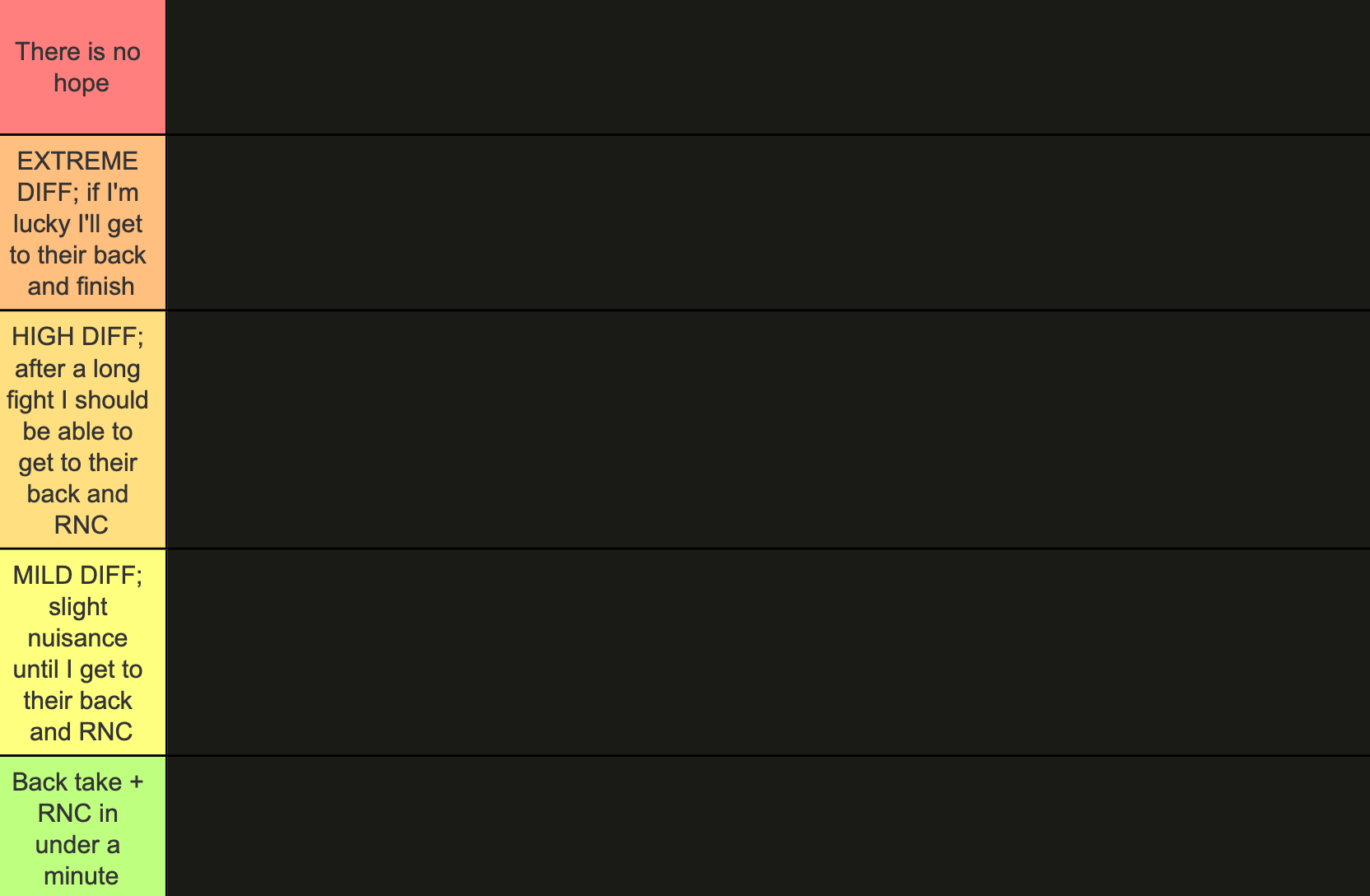 Tier 5: I would take their back and submit them in under a minute