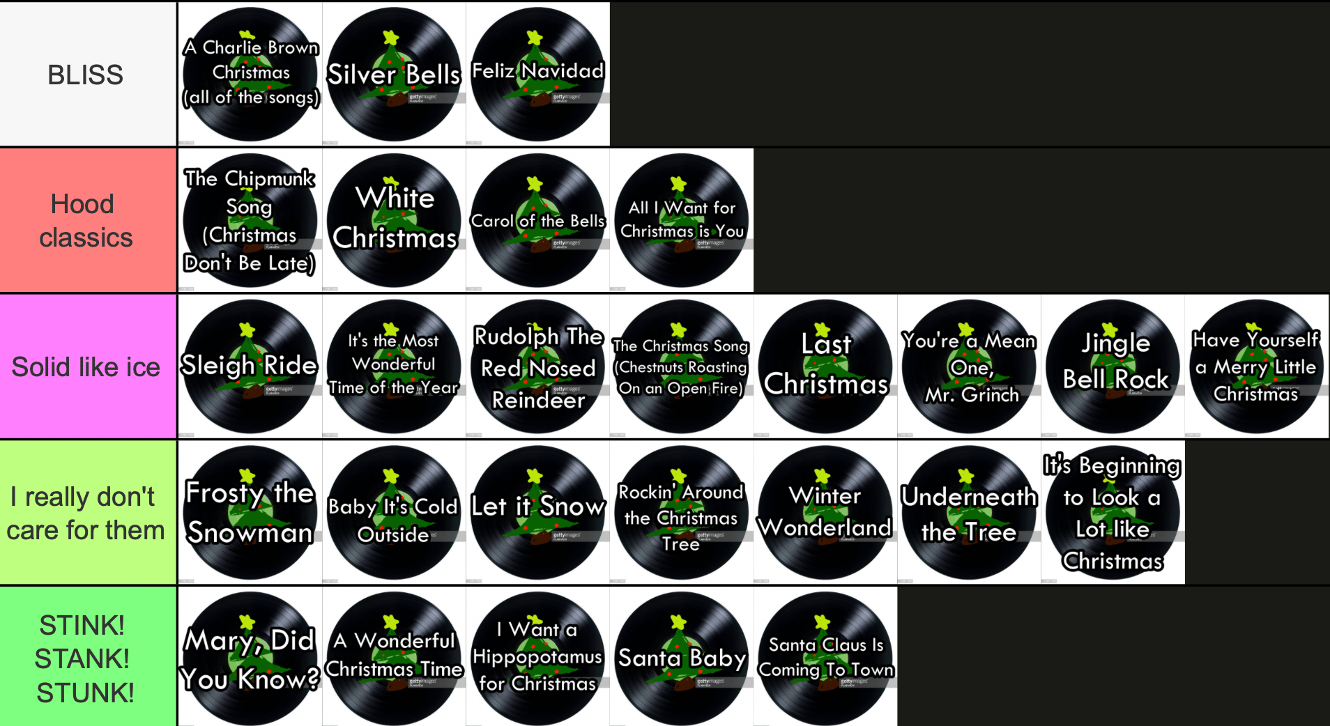 Disclaimer 1. I did not make the entries, I simply made the tiers and ordered them. It just so happens that these are a vast So apologies if your favorite Christmas song is not on here.