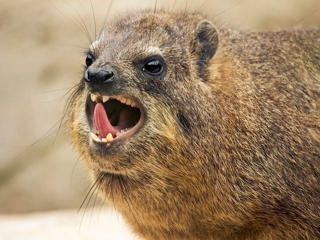 Hyraxes’ closest relatives are the elephant, and the manatee. All three of these creatures are in a strange family, and it is unknown how they are all related to each other, or which one came from which. Some of their family ties can be seen in their unusual tusk-like incisor teeth.