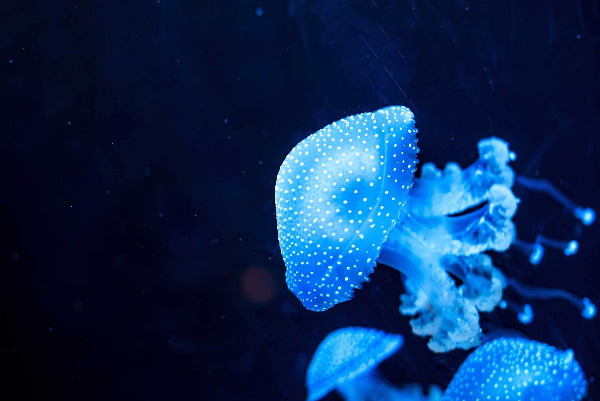 Many jellyfish sport glowing bioluminescence, which is often used as a defense against predators. We use their bioluminescence (specifically the green florescent protein) to help us study cells, and to make glowing aquarium fish!