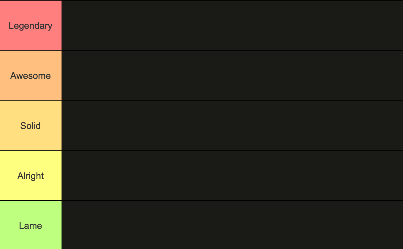 As per usual, here are our tiers: