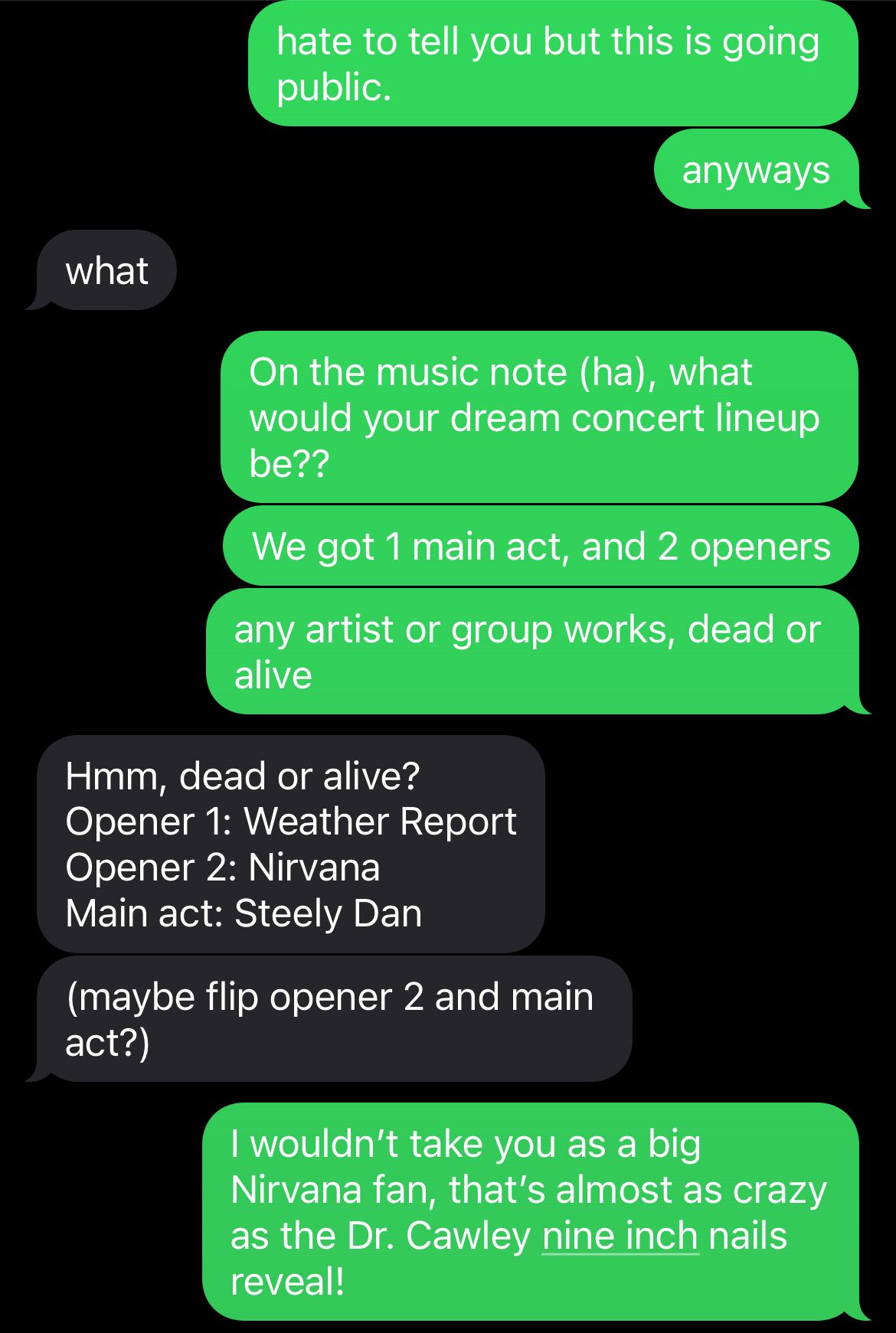 Favorite Songs: All? None? I don’t remember which song is which, sorry. I’ll do better next time.