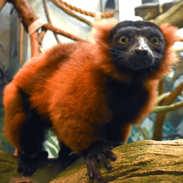 Red ruffed lemurs live in matriarchal family groups of up to 16 individuals and are critically endangered with less than 10,000 individuals left in the wild.